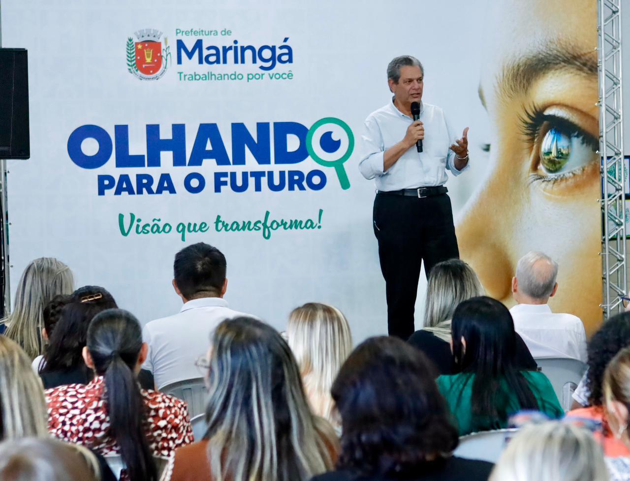 A Prefeitura de Maringá, por meio das secretarias de Saúde e Educação (Seduc), lançou nesta sexta-feira, 23, o programa ‘Olhando para o Futuro’, uma ação que alcançará mais de 18 mil alunos de cinco a 11 anos da rede municipal de ensino. Com recursos próprios de R$ 1.620826,38, a ação tem como objetivo identificar precocemente possíveis dificuldades visuais em estudantes da rede municipal, oferecendo triagem, encaminhamento e entrega de óculos para uso. O serviço será oferecido gratuitamente.